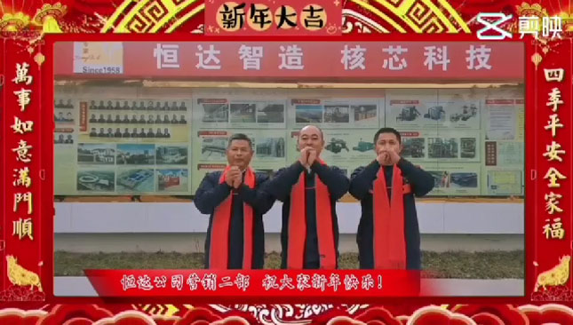 在此新春到來(lái)之際,南通恒達(dá)公司董事長(zhǎng)崔恒全先生攜全體員工祝大家:芝麻開花節(jié)節(jié)高、百尺竿頭日日升、前程似錦、大展宏圖、萬(wàn)事如意、心想事成!